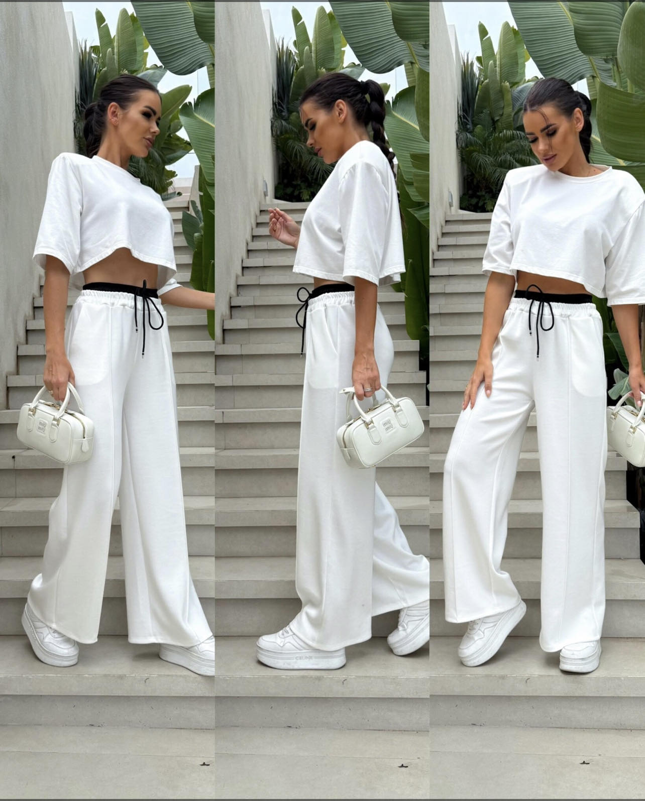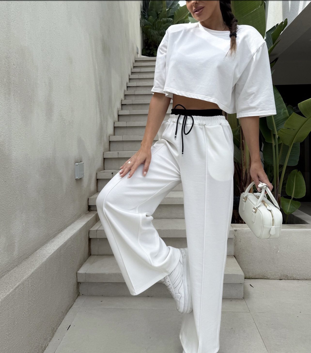 Udobje in stil v enem! Hlače Ansley so popolna izbira za sproščene dni, sprehode po mestu ali trendi kombinacije doma. Izjemno mehka in prijetna tkanina s širokimi hlačnicami ter elastičnim pasom z vrvico zagotavljata brezskrben in moden videz. Kombiniraj jih s crop topom in supergami za športno-eleganten videz!