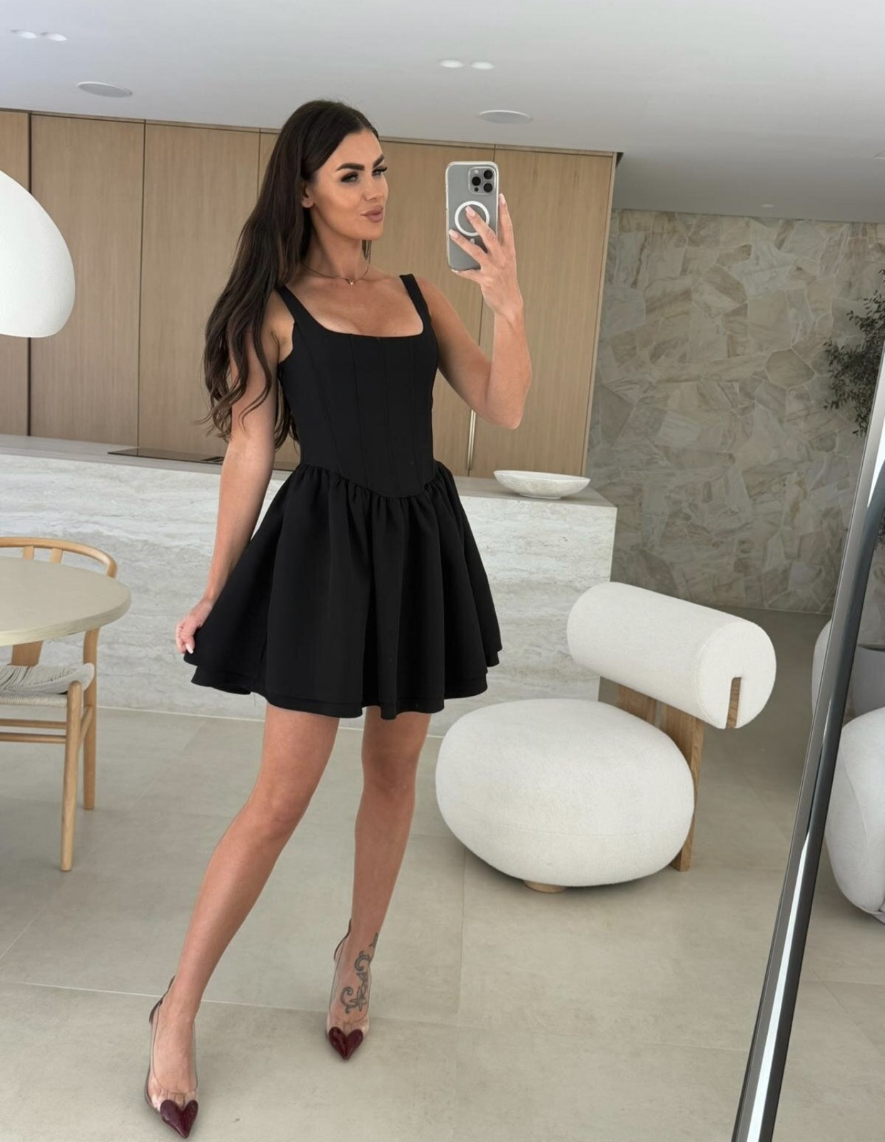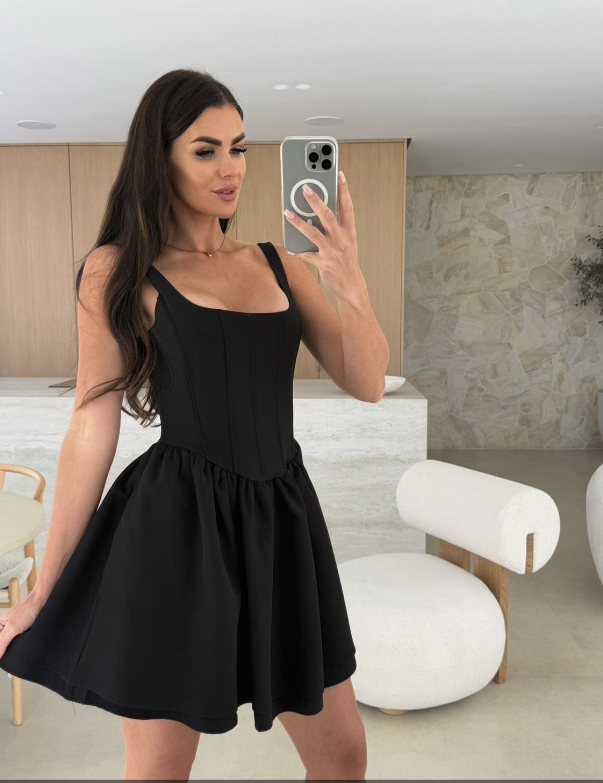 Elegantna mini obleka z vrhunskim krojem, ki poudari tvojo silhueto in poskrbi za wow efekt. Kvadratni izrez + bogat mini kroj = popolna kombinacija za poletne dni in noči. ✨
